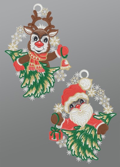 ArtikelbildFensterbild aus Plauener Spitze® - Niedlicher Weihnachtsmann #1W mehrfarbig
