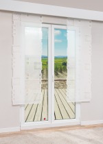 Ein leinenartiges Gewebe ist hier die Grundlage für eine abwechslungsreich mit verschiedenen geometrischen Elementen gestaltete Tischdeko von Plauener Spitze®. Dazu gehören zum Beispiel umrahmte Quadrate von transparenter Natur, die für lebendige Effekte sorgen. Ein großes Quadrat mit derselben doppelten Umrahmung wie auch die anderen Elemente stellt ein Liniengewirr mit verschieden großen, gestickten Punkten wie ein abstraktes Gemälde dar. Das moderne Design steht hier im Kontrast zum natürlichen, an Leinengewebe erinnernden Stoff, der für ein entspanntes, wohnliches Ambiente sorgt. Für die Kombination mit kräftigen Farbakzenten ist diese dennoch schlichte Tischdeko wie gemacht und kann als Tischdecke, Tischläufer, kleines Deckchen oder Tischband umgesetzt werden.